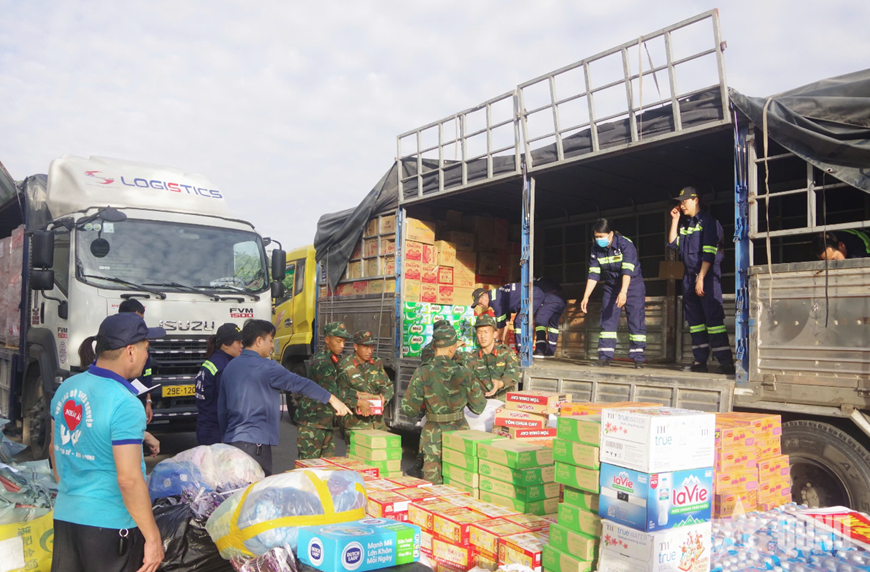Ngay trong chiều 22-11, bám sát tinh thần chỉ đạo của Trung ương, tỉnh, Ủy ban Mặt trận Tổ quốc tỉnh Quảng Ninh, cán bộ, chiến sĩ Bộ CHQS tỉnh Quảng Ninh có mặt cùng các lực lượng khác tiến hành bốc xếp hơn 40 tấn hàng hóa tập kết tại Trụ sở Ủy ban Mặt trận Tổ quốc Việt Nam tỉnh. Hơn 40 tấn hàng sẽ được gấp rút đóng gói chu đáo, kỹ lưỡng để kịp thời đưa vào hỗ trợ người dân vùng lũ tỉnh Lâm Đồng ngay trong chuyến hàng hỗ trợ đầu tiên chiều 22-11, thể hiện tinh thần sẻ chia và trách nhiệm của tỉnh đối với bà con đang gặp khó khăn.