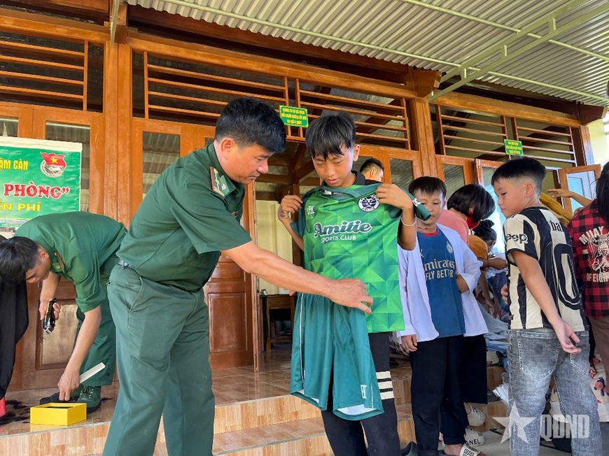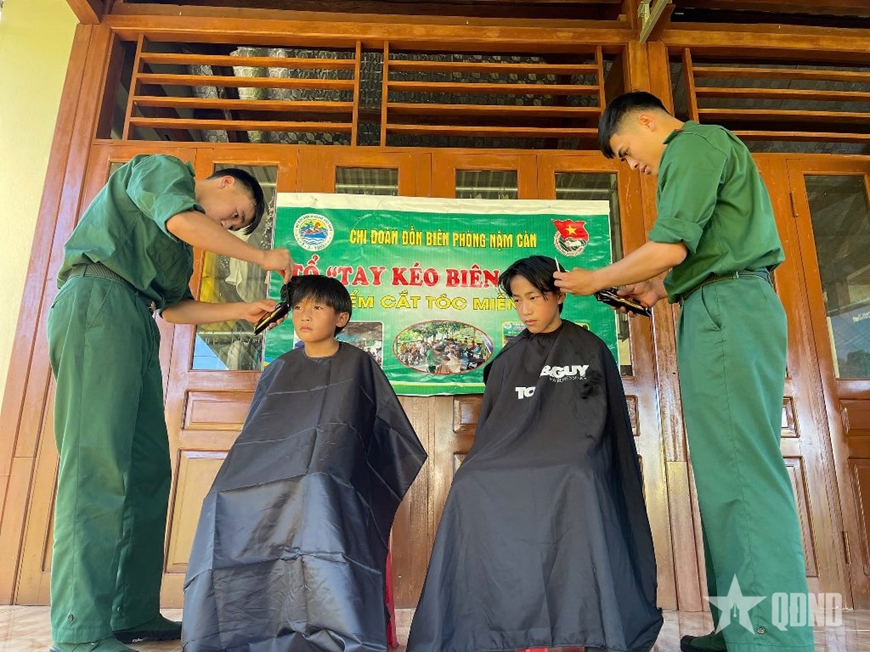 | Đồn Biên phòng Nậm Càn cắt tóc miễn phí cho các em học sinh trên địa bàn. |