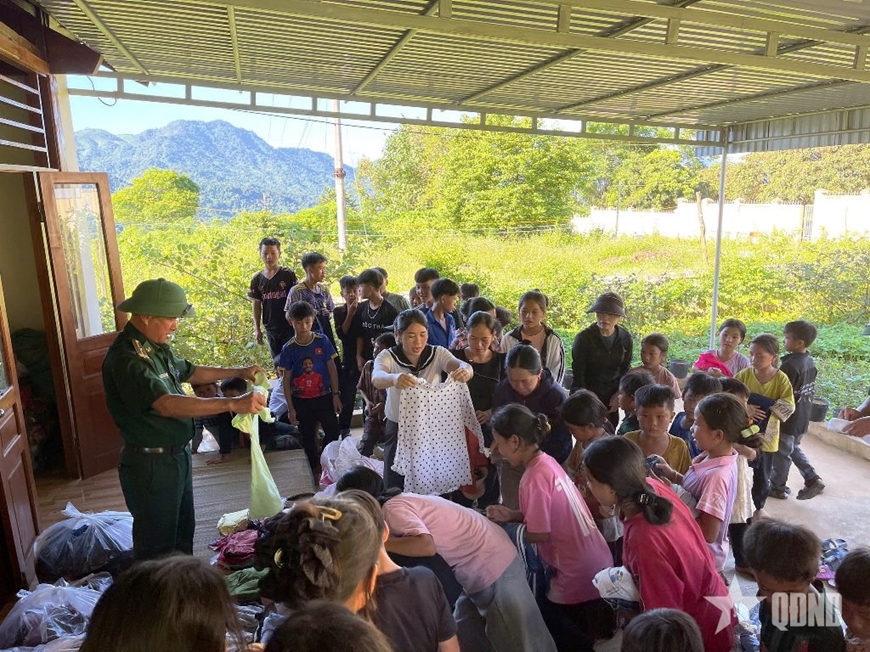 Không chỉ dừng lại ở sự sẻ chia trong ngày khai trường, trước đó nhiều ngày, bộ đội biên phòng đã cùng bà con và nhà trường khẩn trương khắc phục hậu quả sau lũ, dọn bùn đất, dựng lại phòng học, sửa bàn ghế, quét dọn sân trường. Nhiều đơn vị vận động, quyên góp quần áo, sách vở, đồ dùng học tập, trao tận tay cho học sinh có hoàn cảnh khó khăn.