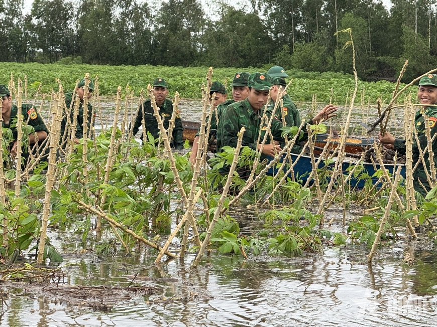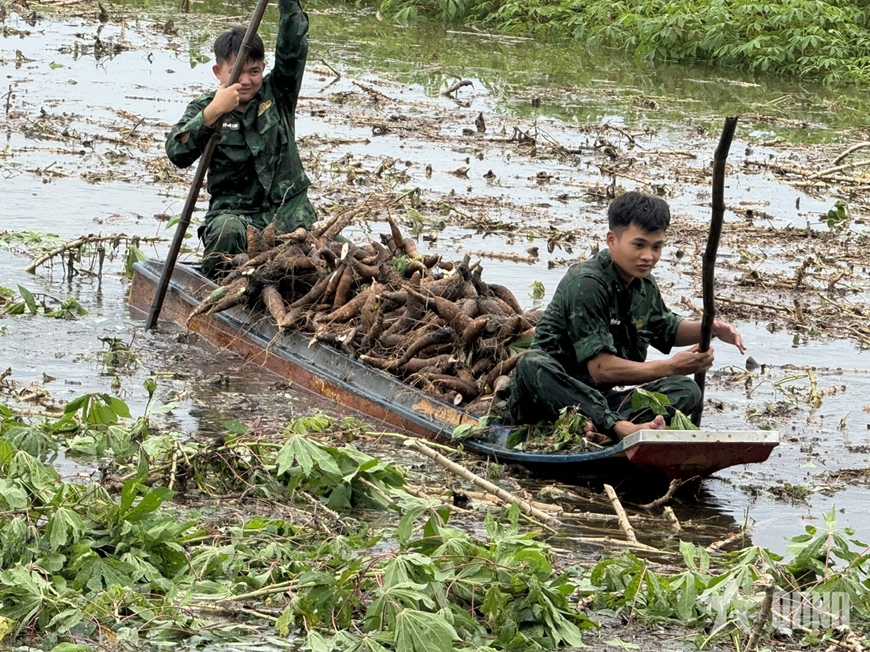 Theo Thượng tá Âu Thành Trí, Đồn trưởng Đồn biên phòng Vĩnh Điều (Bộ đội Biên phòng tỉnh An Giang) cho biết, đơn vị đang tiếp tục cử lực lượng mang theo khí tài, thực phẩm khô, hành quân xuống địa bàn giúp dân thu hoạch hoa màu bị ngập sâu trong nước lũ. Trong ba ngày qua, hơn 100 lượt cán bộ, chiến sĩ của đồn đã phối hợp cùng chính quyền địa phương và lực lượng thanh niên hỗ trợ người dân thu hoạch khoai mì, rau màu tại xã Vĩnh Điều. Hiện toàn bộ cánh đồng của xã đã bị ngập, nước tiếp tục dâng cao, ước tính thiệt hại hơn 3 tỷ đồng. Các lực lượng vẫn đang nỗ lực giúp dân thu hoạch, với tinh thần “không để bà con bị thiệt hại thêm”.
