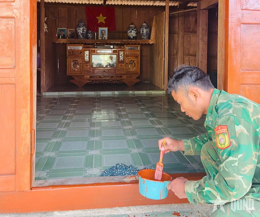 | Bộ đội vừa hoàn thiện, người dân cũng tranh thủ bày biện, trang trí nhà cửa. |