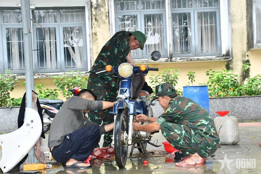 Thiếu tá QNCN Hồ Trung Tín, nhân viên Trạm sửa chữa, phòng Hậu cần-Kỹ thuật Bộ CHQS thành phố Huế thông tin thêm, do số lượng xe ngập nước rất nhiều nên anh em sẽ tranh thủ làm xuyên trưa, làm cả buổi tối, cố gắng để hoàn thành và bàn giao phương tiện cho các em sinh viên trong thời gian sớm nhất.