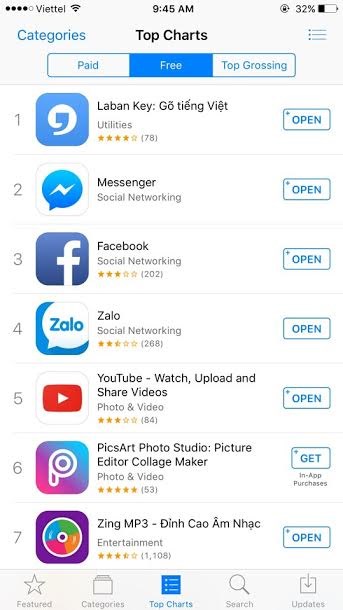 Ngày 9-2, Laban Key đã vào Top 1 trên kho tải của Apple, vượt qua nhiều ứng dụng hàng đầu như Zalo, Messenger, Facebook, Zing MP3, Youtube.