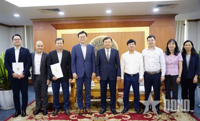 Lãnh đạo Bộ Nông nghiệp và Môi trường tiếp nhận 110 triệu won từ lãnh đạo Công ty TNHH S-TEC System hỗ trợ người dân tỉnh Đắk Lắk.