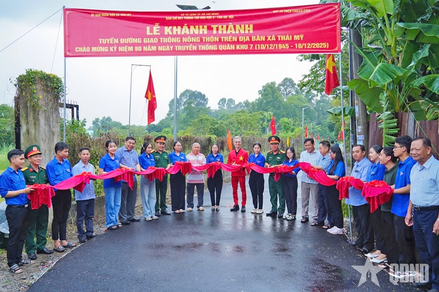 Chiều 16-11, tại xã Thái Mỹ (TP Hồ Chí Minh), Ban chỉ huy Phòng thủ khu vực 3 - Tân An Hội (Bộ tư lệnh TP Hồ Chí Minh) phối hợp tổ chức Lễ khánh thành tuyến đường giao thông nông thôn trên địa bàn, chào mừng kỷ niệm 80 năm Ngày truyền thống Quân khu 7 (10-12-1945 / 10-12-2025).