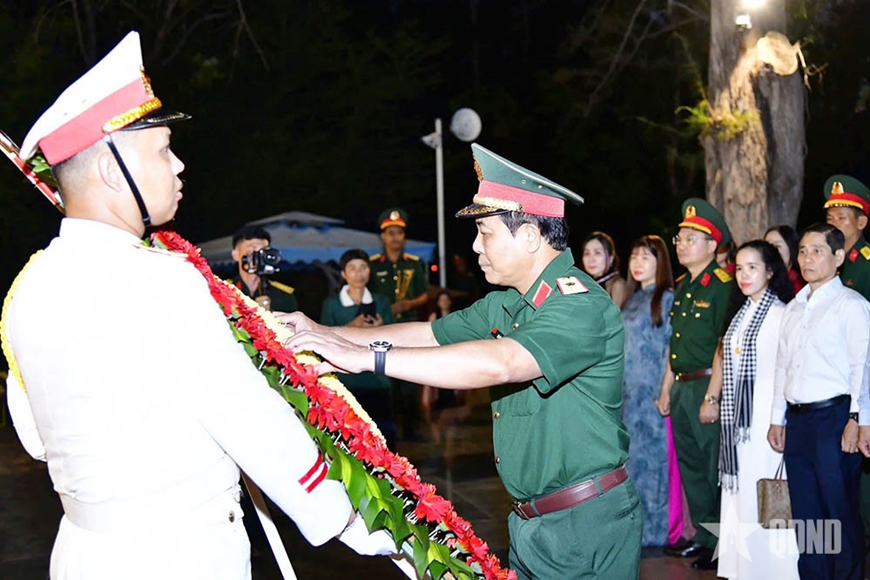 | Dâng hương, dâng hoa tưởng niệm các anh hùng liệt sĩ. |