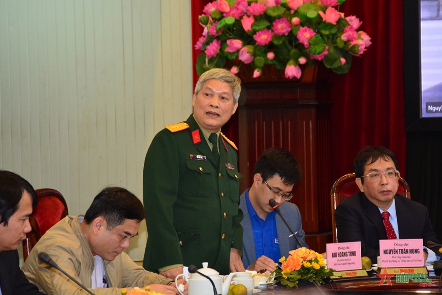 | Đại tá Đỗ Phú Thọ, Bí thư Đảng ủy, Phó tổng biên tập Báo Quân đội nhân dân phát biểu tại tọa đàm. |