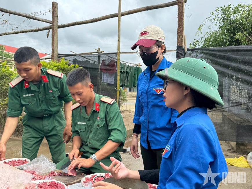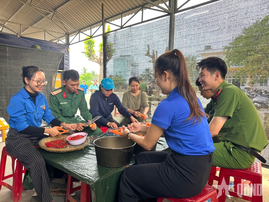 Để có được bữa cơm ấm áp nghĩa tình, Hội Phụ nữ cùng cán bộ, đoàn viên, thanh niên địa phương đã chuẩn bị thực phẩm và cùng với cán bộ, chiến sĩ Trung đoàn 38, Sư đoàn 2 nấu nướng. Những món ăn tuy giản dị nhưng chan chứa tình cảm, thể hiện sự quan tâm, sẻ chia sâu sắc của cấp ủy, chính quyền và các đoàn thể địa phương đối với lực lượng vũ trang đang ngày đêm vì nhân dân quên mình.