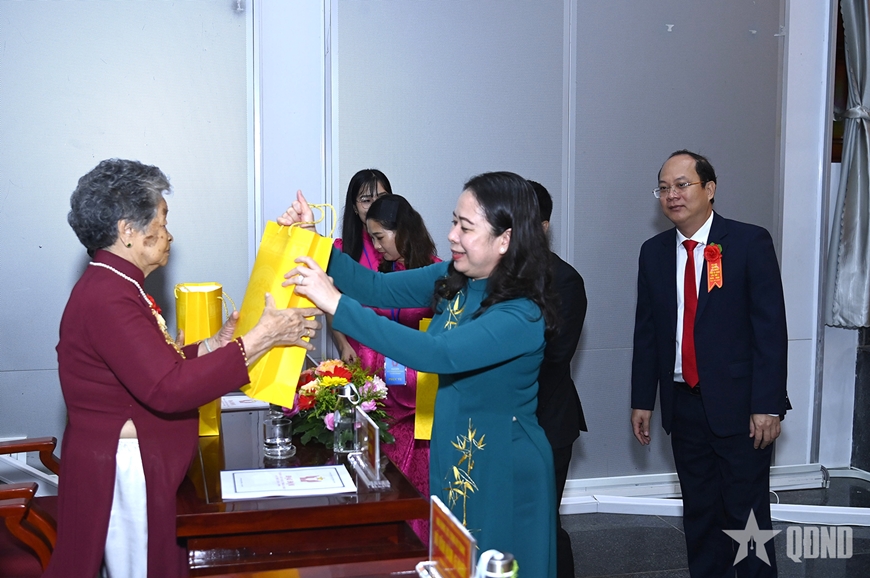 Phó chủ tịch nước Võ Thị Ánh Xuân trao quà tặng Mẹ Việt Nam Anh hùng, Anh hùng Lực lượng vũ trang nhân dân.