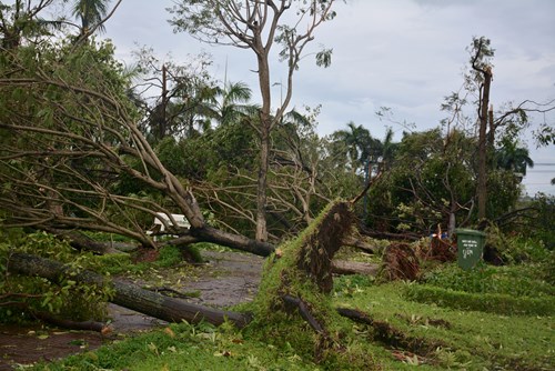 Hàng trăm cây xanh trong Công viên Văn hóa Diên Hồng (thành phố Tuy Hòa) bị gãy đổ.