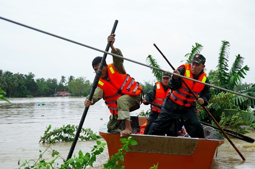 Cán bộ, chiến sĩ huyện Tuy An, Bộ CHQS tỉnh Phú Yên tham gia tìm kiếm số người bị nạn.