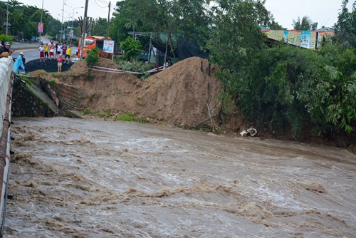 Cầu Thành Công (Gia Lai) phía đầu bị sạt lở.