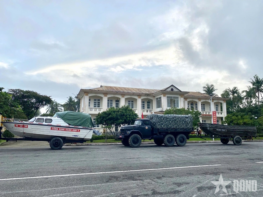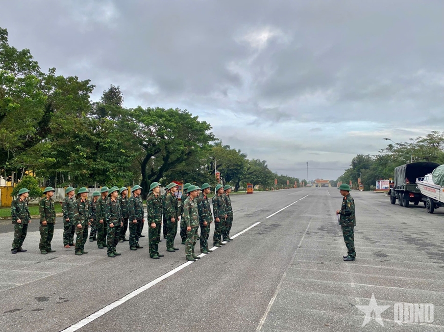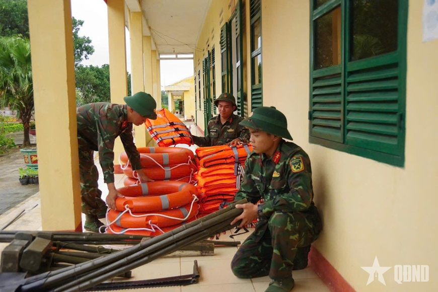| Cán bộ, chiến sĩ Sư đoàn 315 (Quân khu 5) kiểm tra vật chất sẵn sàng ứng phó bão Kalmaegi. |