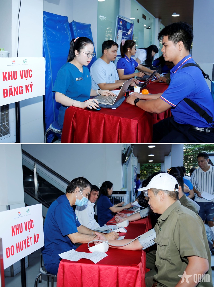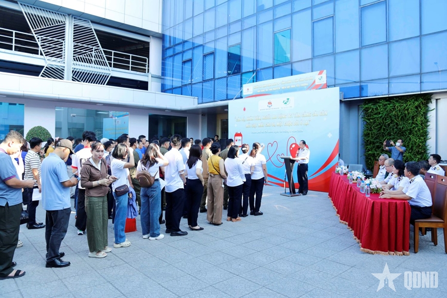 Sáng 28-3, tại Trung tâm Y tế Tân Cảng (Binh đoàn 20 - Tổng công ty Tân Cảng Sài Gòn) tổ chức chương trình hiến máu tình nguyện năm 2026 với chủ đề “Nối vòng tay tình nguyện - Hiến giọt máu yêu thương”, thu hút gần 500 cán bộ, nhân viên, người lao động tham gia.