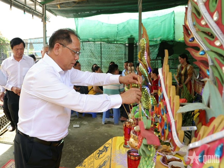 | Đồng chí Trần Văn Hùng, Phó chủ tịch UBND TP Cần Thơ thắp hương viếng nạn nhân bị tử vong do điện giật. |