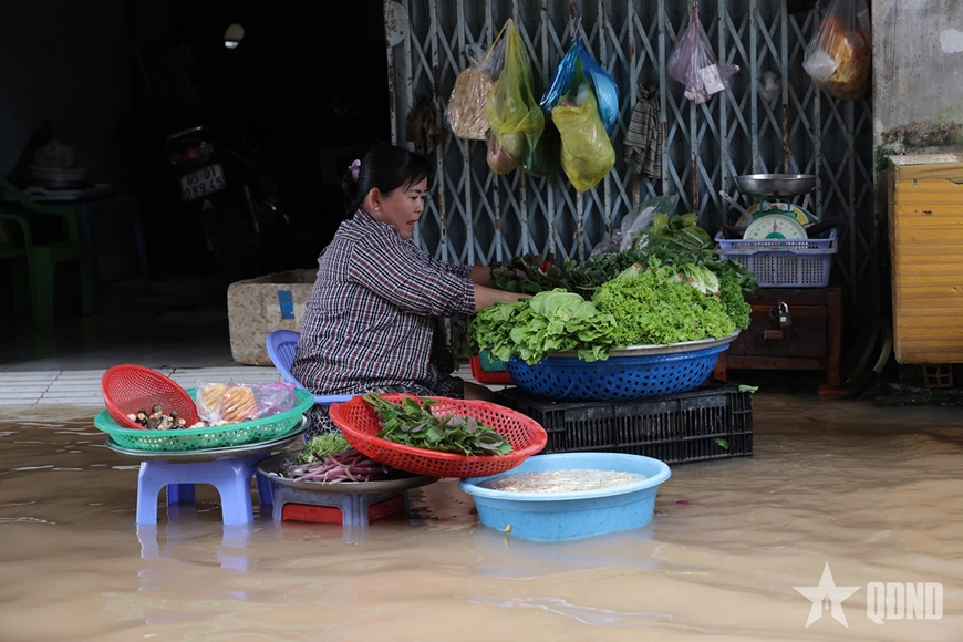 Tại các khu vực trũng thấp, nước tràn vào tận nhà khiến người dân phải kê kích đồ đạc, dùng bao cát chắn cửa. Nhiều hộ chật vật chống ngập, sinh hoạt đảo lộn. Tiểu thương tại chợ Bình Thủy cho biết, việc buôn bán gặp nhiều khó khăn do nước ngập đến mắt cá chân, người mua lẫn người bán đều vất vả.