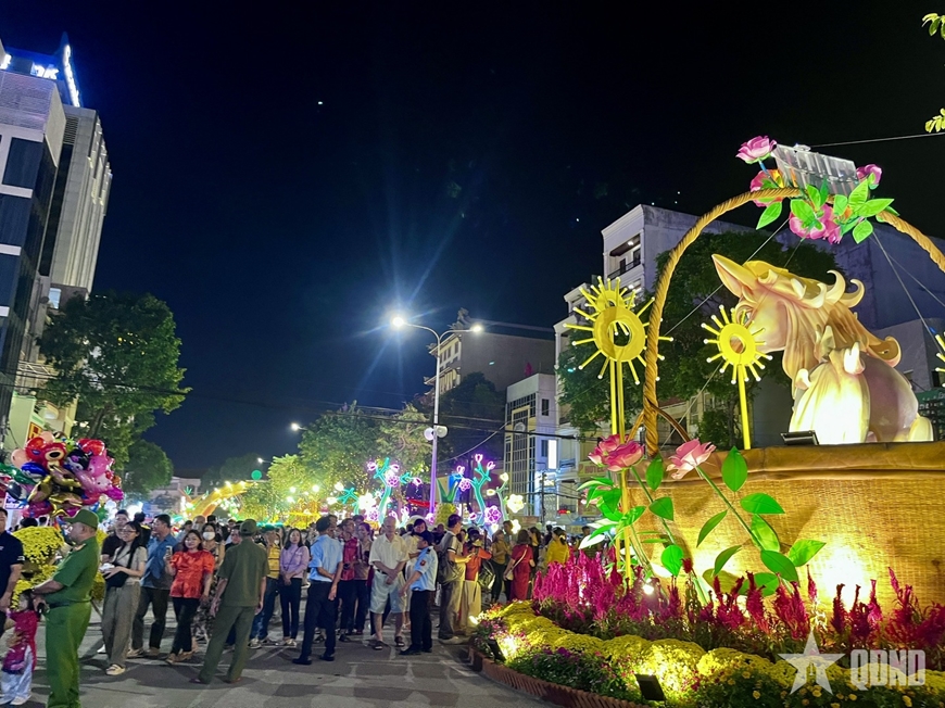 | Đường hoa nghệ thuật thu hút đông đảo người dân và du khách đến tham quan. |