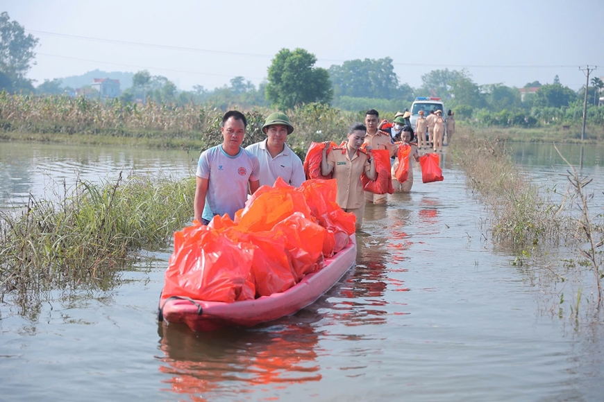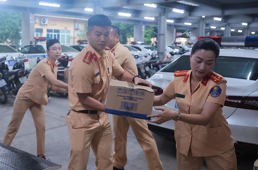 Đại úy Nguyễn Thị Hồng Nhung, Chủ tịch Hội Phụ nữ Phòng CSGT Công an TP Hà Nội chia sẻ: “Chứng kiến cảnh bà con phải sơ tán giữa mưa lũ, chúng tôi hiểu rằng, ngoài việc cứu trợ khẩn cấp, điều người dân cần nhất là sự sẻ chia và đồng hành. Hội Phụ nữ Phòng đã chủ động vận động hội viên quyên góp vật dụng, thuốc men, phân loại, đóng gói, sắp xếp thành từng phần quà phù hợp với nhu cầu thực tế, bảo đảm chuyển đến tận tay người dân vùng ngập trong thời gian sớm nhất. Mỗi suất quà tuy nhỏ nhưng là tấm lòng, là trách nhiệm của tập thể cán bộ, hội viên phụ nữ Phòng CSGT gửi gắm tới đồng bào, với mong muốn giúp người dân sớm vượt qua khó khăn, ổn định cuộc sống.”