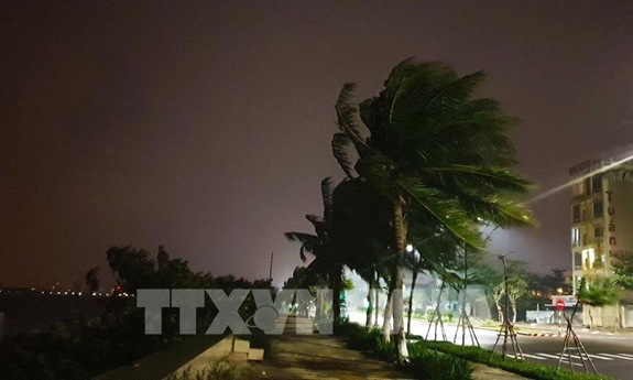 Tuyến đường ven biển Nguyễn Tất Thành (thành phố Đà Nẵng) đã có gió giật mạnh. Ảnh: TTXVN |