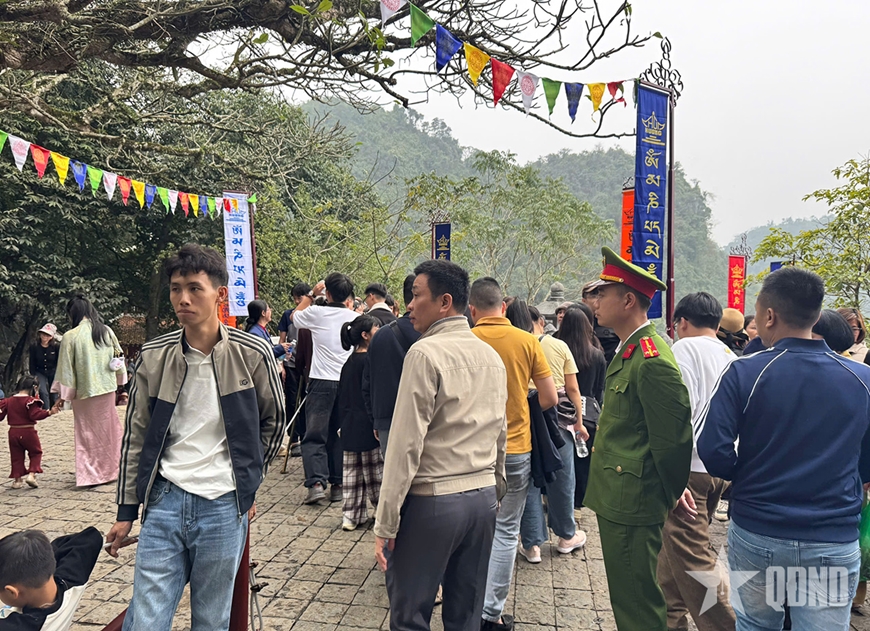 | Lực lượng chức năng túc trực tại nhiều địa điểm trong quần thể di tích chùa Hương để bảo đảm an ninh trật tự và hướng dẫn du khách tham quan. |