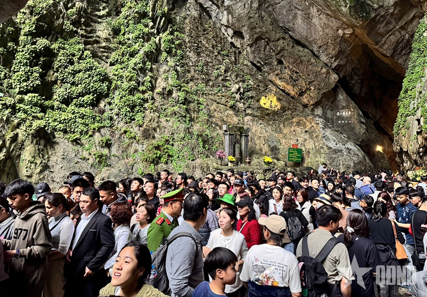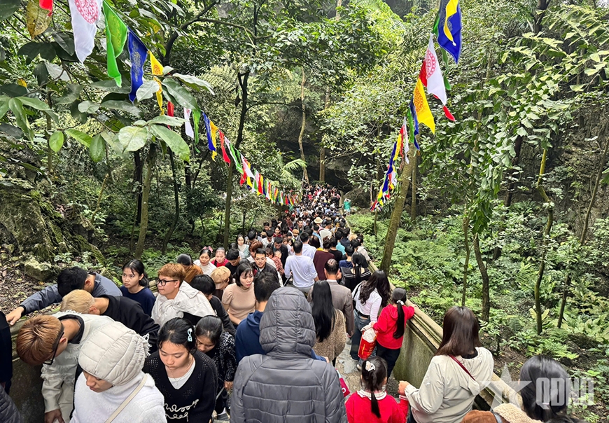 | Động Hương Tích đông nghịt du khách tới cầu an, cầu phúc lộc đầu xuân. |