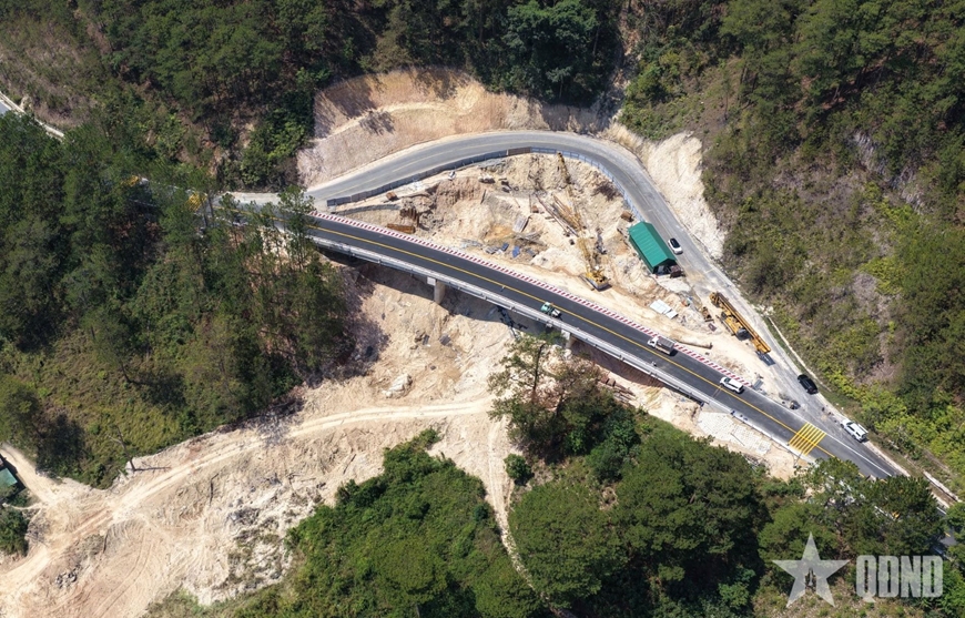 Nhằm bảo đảm nhu cầu giao thông và an toàn cho công trình, tháng 12-2025, Ban Quản lý dự án 85 (Bộ Xây dựng) quyết định xây cầu cạn vượt qua vị trí xảy ra sạt lở. Công trình có tổng chiều dài 133m, rộng 9m. Sau 4 tháng thi công, sáng 22-4, công trình cơ bản hoàn thành, chính thức thông xe; tại hiện trường, đội ngũ công nhân đang khẩn trương hoàn tất một số công đoạn cuối như lắp hộ lan, biển báo, hệ thống thoát nước, cáp viễn thông.