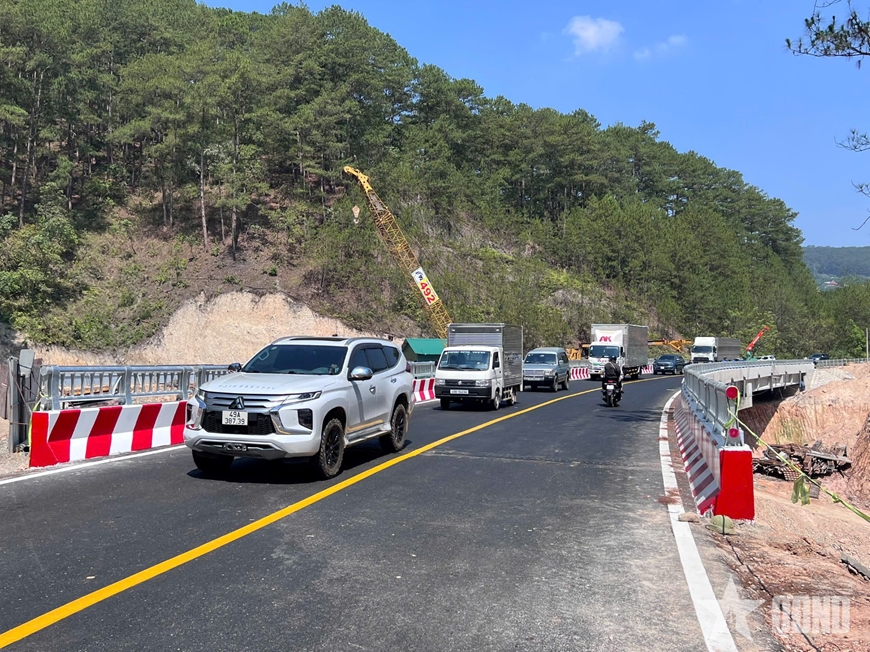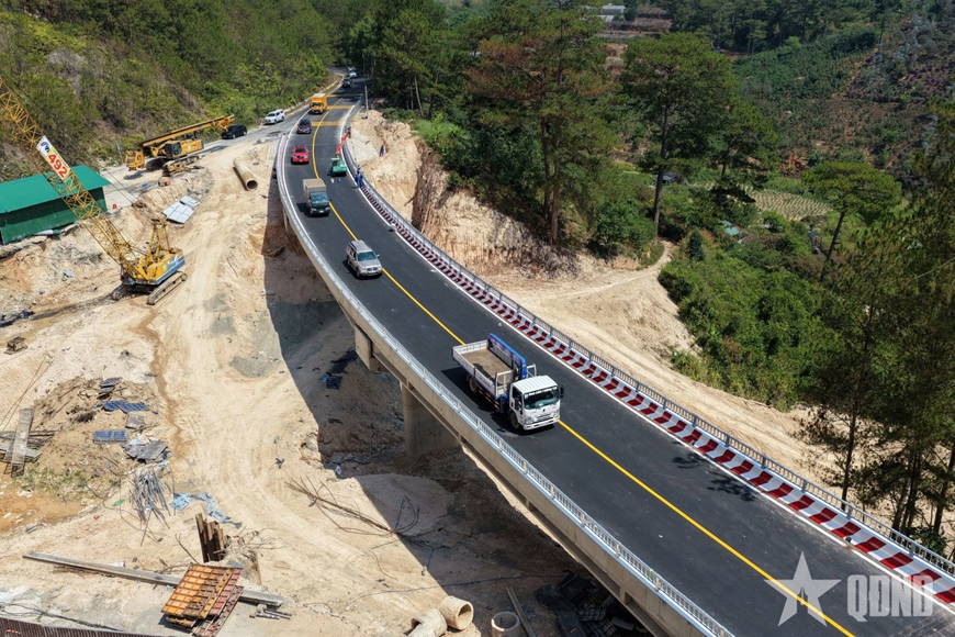 Sáng 22-4, cầu cạn trên đèo Mimosa, Quốc lộ 20, phường Xuân Hương - Đà Lạt, tỉnh Lâm Đồng chính thức cho phép người và phương tiện lưu thông.