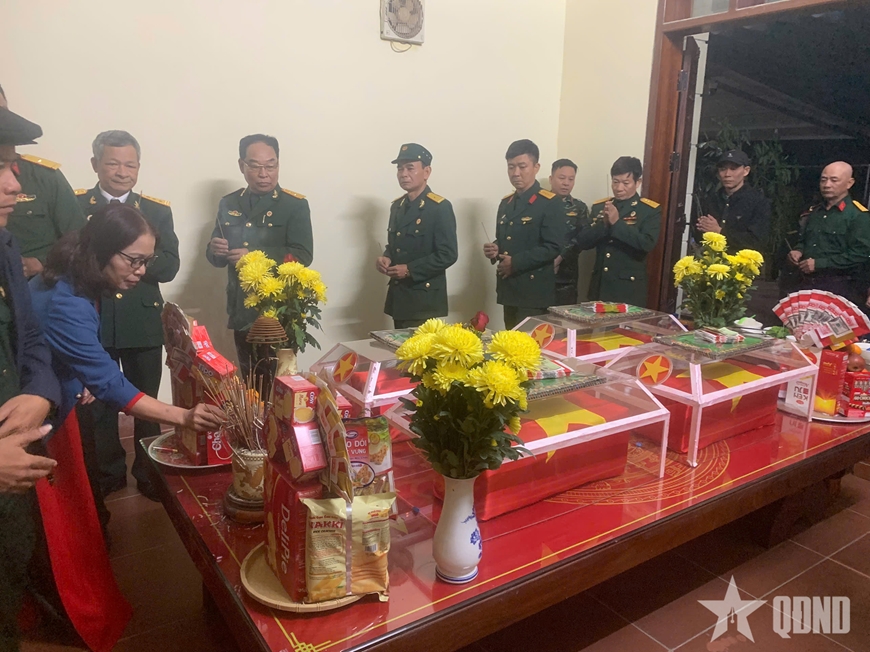 | Đoàn dâng hương các liệt sĩ vừa được quy tập trên địa bàn. |