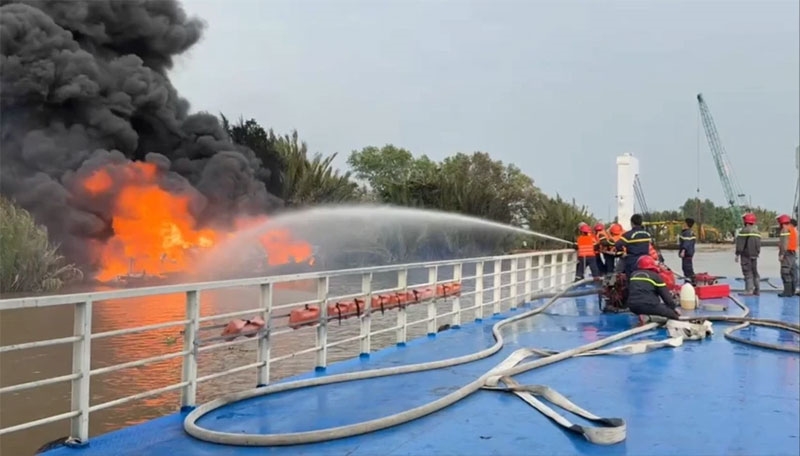 Qua xác minh ban đầu của cơ quan chức năng, nguyên nhân vụ cháy được xác định do nổ bình gas, dẫn đến cháy lan nhanh trên toàn bộ ghe.