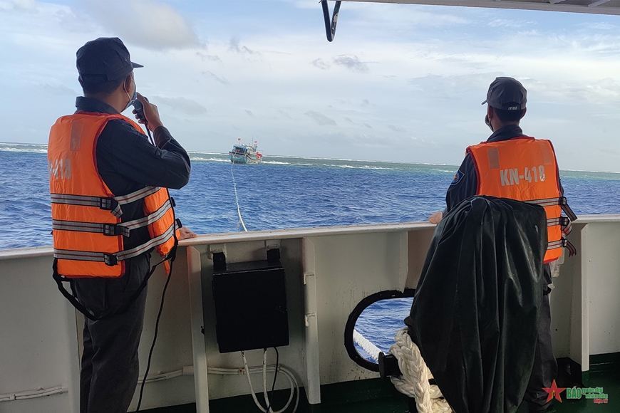 Ngày 29-12, tàu kiểm ngư 418, Chi đội Kiểm ngư số 4, lực lượng Kiểm ngư Việt Nam đang làm nhiệm vụ tại khu vực biển đảo Đá Lát (huyện đảo Trường Sa, tỉnh Khánh Hòa) thì nhận được lệnh xuất phát đi cứu hộ tàu cá QNg 90658TS bị mắc cạn.