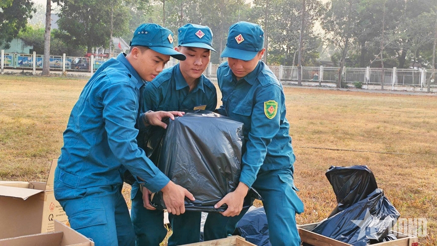 Tại Ban CHQS xã Minh Thạnh (Bộ tư lệnh TP Hồ Chí Minh), cán bộ, chiến sĩ đang tích cực hỗ trợ các lực lượng chức năng triển khai trận địa pháo hoa tầm thấp phục vụ nhân dân đêm giao thừa. Các công việc đều được thực hiện cẩn trọng, đúng quy trình kỹ thuật, bảo đảm an toàn tuyệt đối về người và phương tiện.