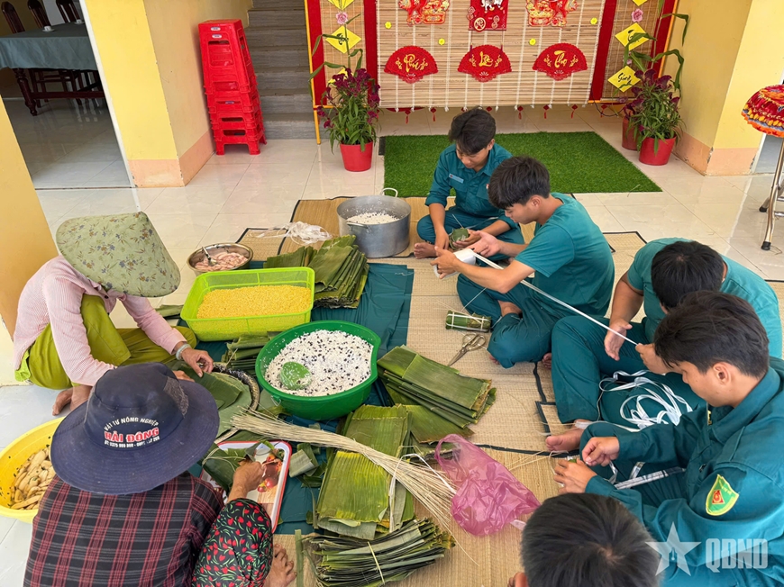 Còn tại tuyến biên giới Tây Ninh, chốt dân quân thường trực biên giới ấp Gò Dồ Nhỏ, Ban CHQS xã Bình Hòa, tỉnh Tây Ninh, bên cạnh việc duy trì nghiêm chế độ trực, tuần tra bảo vệ đường biên, cột mốc, cán bộ, chiến sĩ còn phối hợp với Tổ Phụ nữ Điểm dân cư liền kề chốt tổ chức hoạt động gói bánh tét mừng xuân. Giữa không gian đầm ấm, tiếng cười nói rộn ràng, những đòn bánh tét xanh vừa được vớt ra khỏi nồi nóng hổi, ấm nồng tình cảm quân dân.