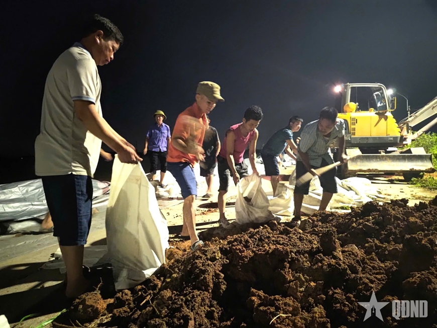 Người dân đang tích cực cùng lực lượng chức năng địa phương tiến hành gia cố một số đê, đoạn đê có nguy cơ cao bị ngập.