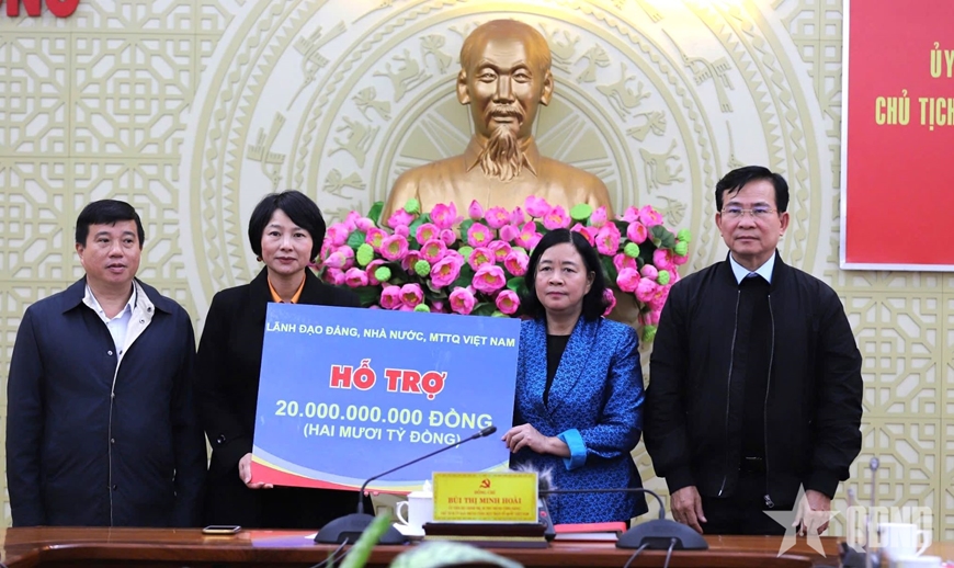 Thay mặt lãnh đạo Đảng, Nhà nước, MTTQ Việt Nam, đồng chí Bùi Thị Minh Hoài đã trao 20 tỷ đồng hỗ trợ tỉnh Lâm Đồng khắc phục hậu quả thiên tai, mưa lũ.