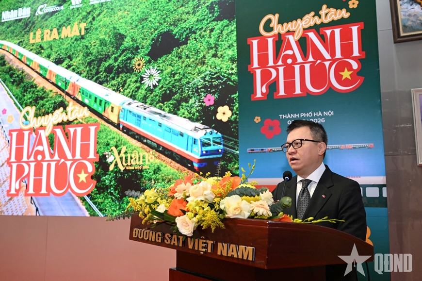 Sáng 2-2, tại Ga Hà Nội, Báo Nhân Dân phối hợp với Tổng công ty Đường sắt Việt Nam và Công ty Cổ phần Xây dựng Coteccons cắt băng khánh thành, ra mắt “Chuyến tàu Hạnh phúc” - một không gian văn hóa di động rực rỡ sắc xuân, mang theo thông điệp nhân văn sâu sắc trong những ngày đầu năm mới Bính Ngọ 2026.