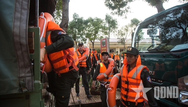 | Lực lượng Cảnh sát cơ động Công an tỉnh Đắk Lắk cơ động hỗ trợ chống bão. |