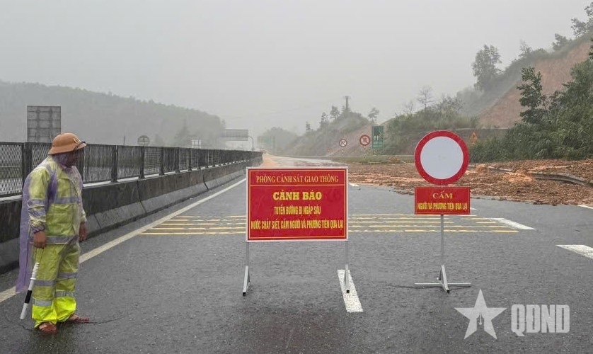 Trên tuyến đường La Sơn - Túy Loan, đêm 26 và sáng 27-10, nhiều điểm sạt lở nghiêm trọng khiến giao thông bị gián đoạn. Lực lượng Cảnh sát giao thông Công an TP Huế đã lập các chốt chặn, đặt biển cảnh báo và hướng dẫn phương tiện không di chuyển vào khu vực nguy hiểm, bảo đảm an toàn cho người, phương tiện và tài sản của nhân dân.