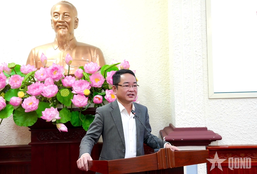 | Tổng biên tập Báo Pháp luật Việt Nam Vũ Hoài Nam phát biểu tại hội nghị. |