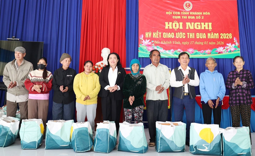 Điểm nhấn đáng chú ý trong giao ước thi đua năm nay của Cụm thi đua số 2 là các chỉ tiêu kinh tế - xã hội mang tính nhân văn sâu sắc, gắn liền với đời sống hội viên. Cụ thể, Hội CCB phường Nam Nha Trang cam kết xây tặng 1 đến 2 căn nhà “Nghĩa tình đồng đội” và hỗ trợ sửa chữa nhà tạm, nhà dột nát cho hội viên. Tại khu vực miền núi, các xã như Tây Khánh Vĩnh, Nam Khánh Vĩnh và Bắc Khánh Vĩnh cũng phấn đấu giảm trên 57% hộ CCB nghèo; riêng xã Khánh Vĩnh và Nam Khánh Vĩnh đặt mục tiêu xóa trắng hộ CCB nghèo trong năm 2026.