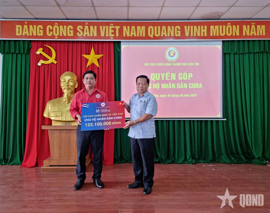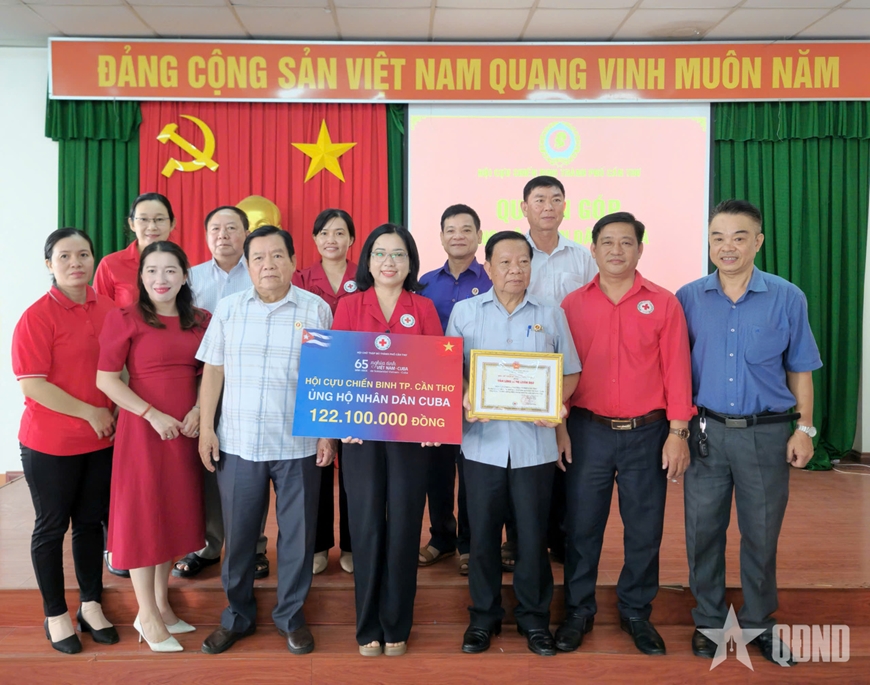 Ngày 15-10, tại TP Cần Thơ, Hội Cựu chiến binh (CCB) thành phố đã trao tặng số tiền 122,1 triệu đồng đến đại diện Hội Chữ thập đỏ TP Cần Thơ nhằm ủng hộ nhân dân Cuba.