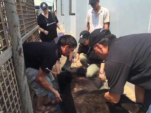 Nhân viên Tổ chức Động vật Châu Á chuẩn bị khám sức khỏe cho gấu.