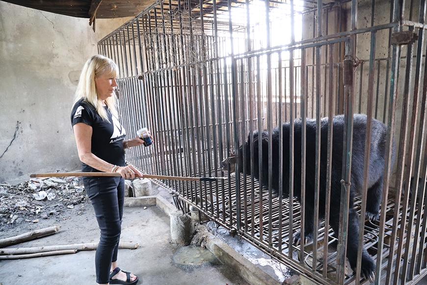 | Tiến sĩ Jill Robinson MBE, Nhà sáng lập kiêm Tổng giám đốc Tổ chức Động vật châu Á cho gấu ăn. |