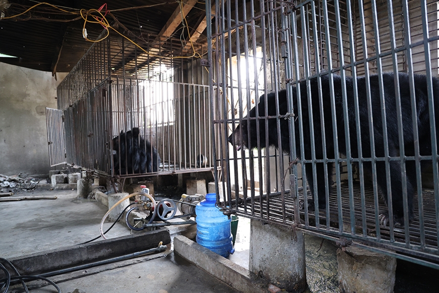 | Hai cá thể gấu trước khi được cứu hộ. |