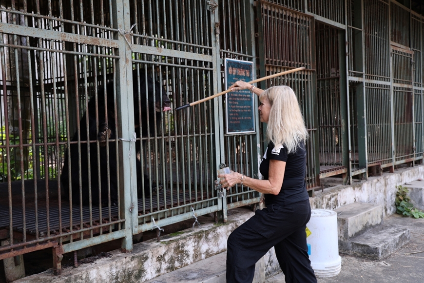 | TS Jill Robinson MBE, Nhà sáng lập, Tổng giám đốc Tổ chức Động vật châu Á cho mật ong giúp gấu bình tĩnh hơn. |