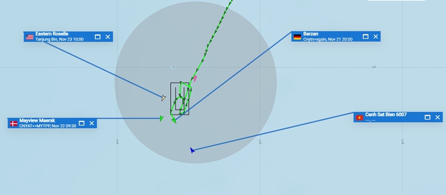 Đến 12 giờ 20 phút ngày 20-11, tàu BARZAN, quốc tịch Đức trên đường hành trình từ Trung Quốc đi Singapore đã tổ chức tìm kiếm, phát hiện và cứu an toàn 14 ngư dân của tàu BĐ 98268 TS đang trôi dạt trên biển.