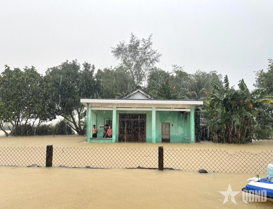 Sau bão số 12, nước lũ dâng cao, gây cô lập nhiều hộ dân khu vực phường Điện Bàn Đông, TP Đà Nẵng.