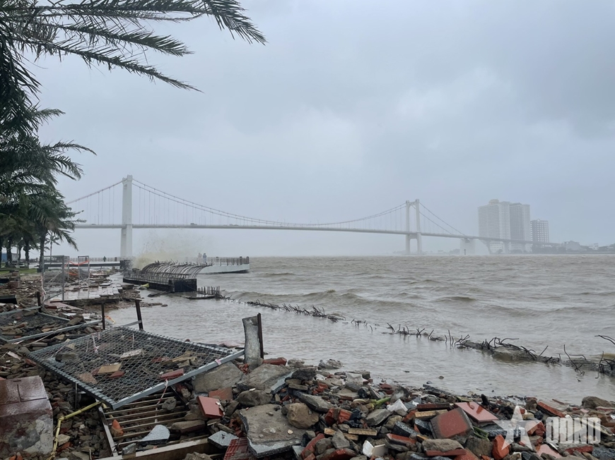 Sạt lở nghiêm trọng tại bờ kè tuyến đường Như Nguyệt (khu vực cầu Thuận Phước, TP Đà Nẵng) sau đợt mưa, bão số 12.