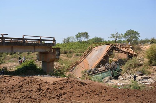 Cầu sập khiến cho người dân đi lại gặp nhiều khó khăn.