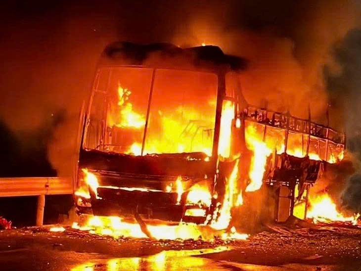 Vụ hỏa hoạn không gây thiệt hại về người nhưng chiếc xe khách giường nằm bị thiêu rụi hoàn toàn cùng nhiều vật dụng, đồ đạc của hành khách.