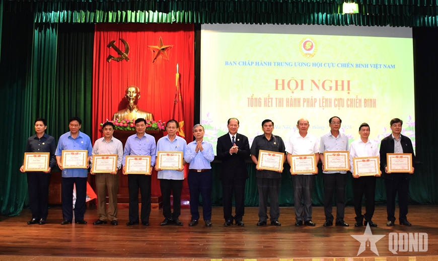 Lãnh đạo Hội Cựu chiến binh Việt Nam trao thưởng tặng các tập thể có thành tích xuất sắc trong thực hiện Pháp lệnh Cựu chiến binh.